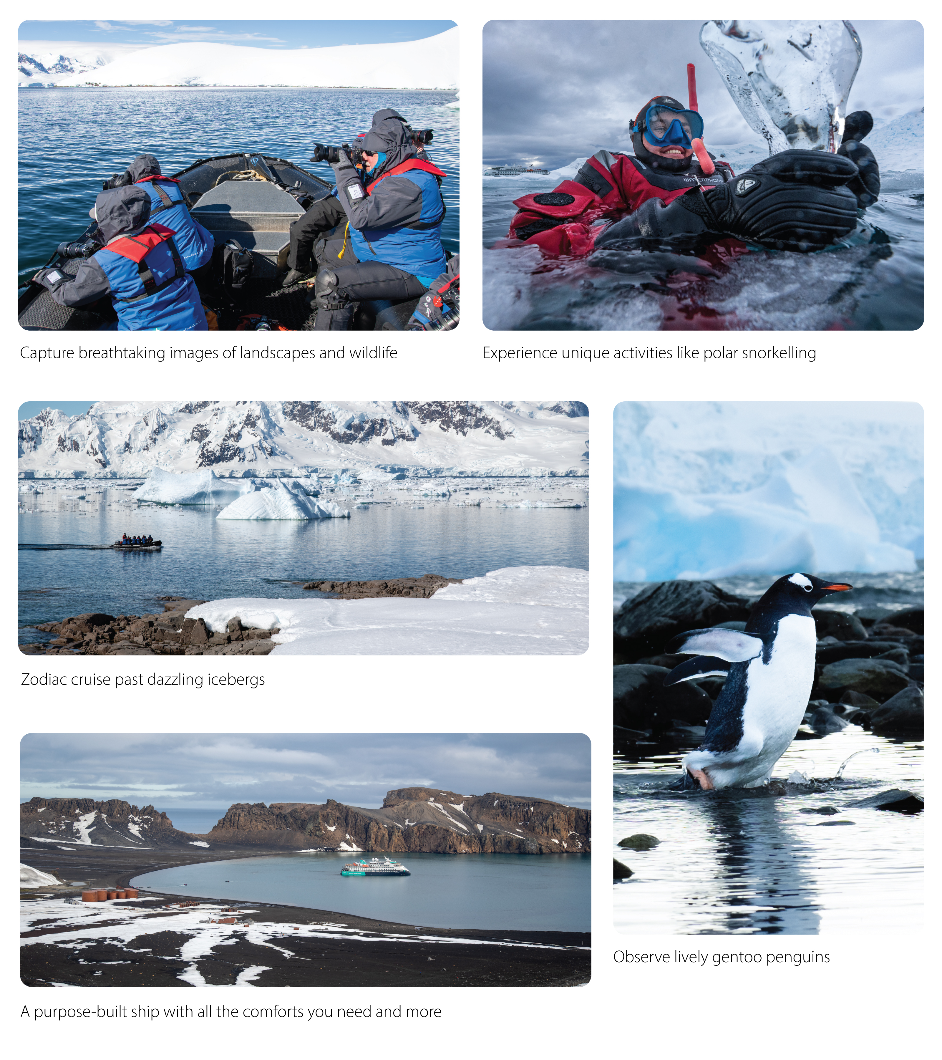 ✓ Experience the spectacular views from above as you take a glimpse of your first icebergs in the Southern Ocean, where your vessel awaits, ready to take you on an exhilarating adventure