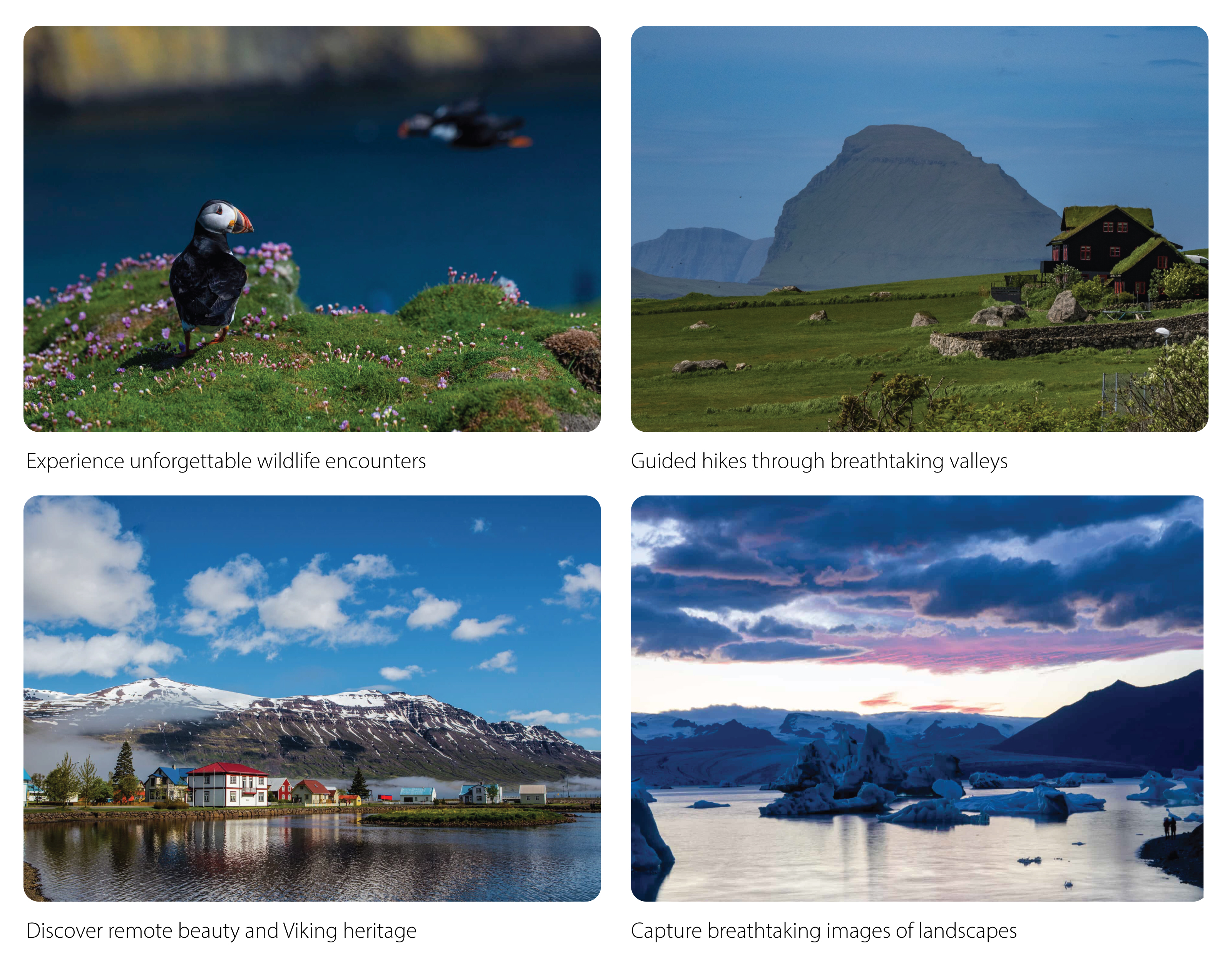 ✓ Zodiac-cruise past sea-sculpted coastlines watching for dolphins, seals, and photograph seabirds in one of Europe’s largest seabird colonies.