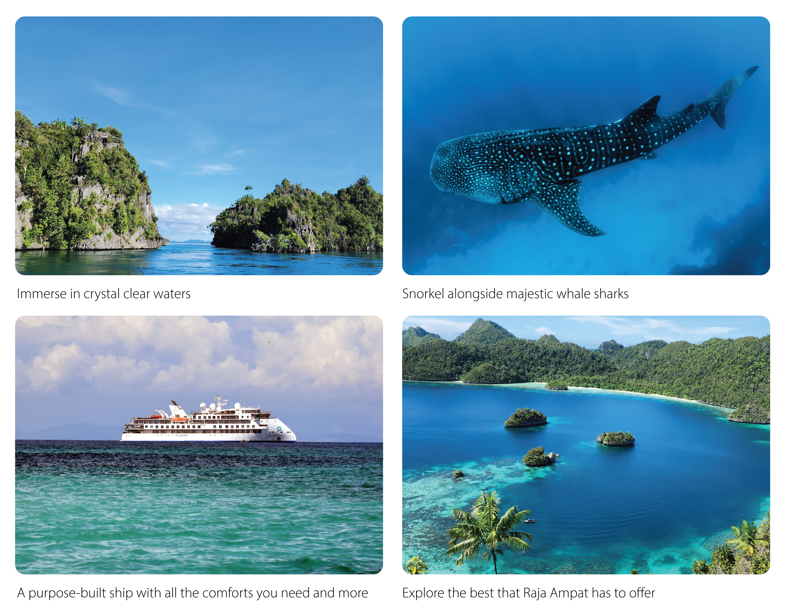 ✓ Experience unforgettable adventures, from snorkelling alongside majestic whale sharks to trekking through lush rainforests.