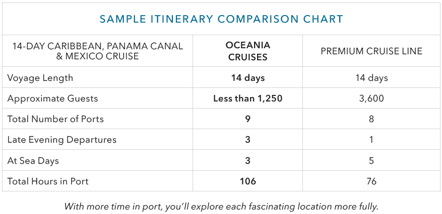 Our carefully planned itineraries are designed to bring you the vibrant cultures and laid-back island spirit of these distinct and ever-changing regions. From marquee destinations such as Gustavia, St. Barts, and Costa Maya, Mexico, to the boutique ports of Pointe-à-Pitre, Guadeloupe, and Port of Spain, Trinidad and Tobago, Oceania Cruises offers the vast treasures of the Caribbean, Panama Canal and Mexico in a way that no one else can. Set sail with us to experience the enviable bliss, exploring sought-after islands and destinations offering palm lined beaches and aquamarine seas alongside unique culinary adventures, colourful architecture and treasured cultural heritage.