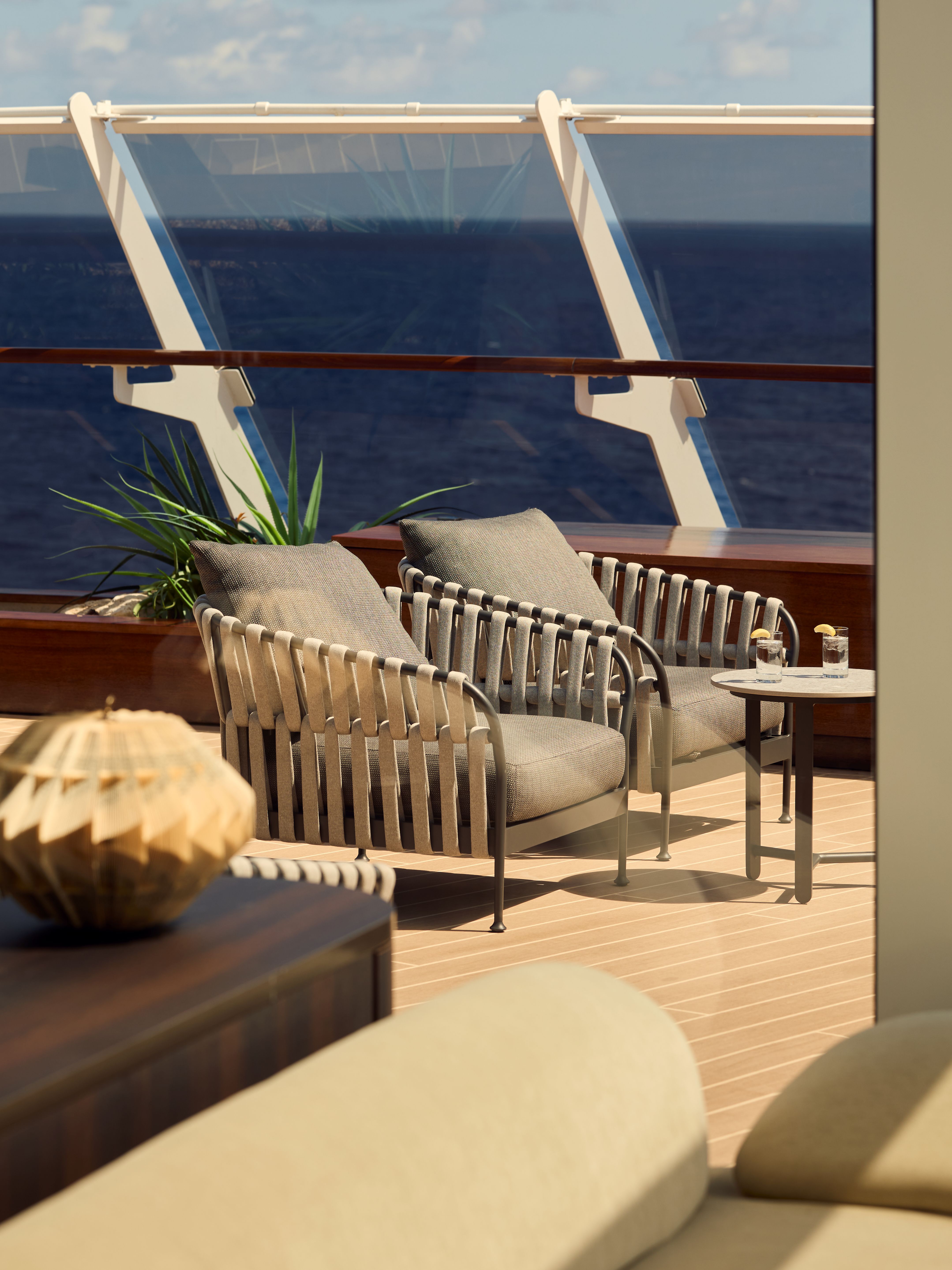 Sail in unrivalled space and privacy with elegantly designed ocean-front suites, penthouses and residences, each featuring a private terrace and floor-to-ceiling views of the sea.