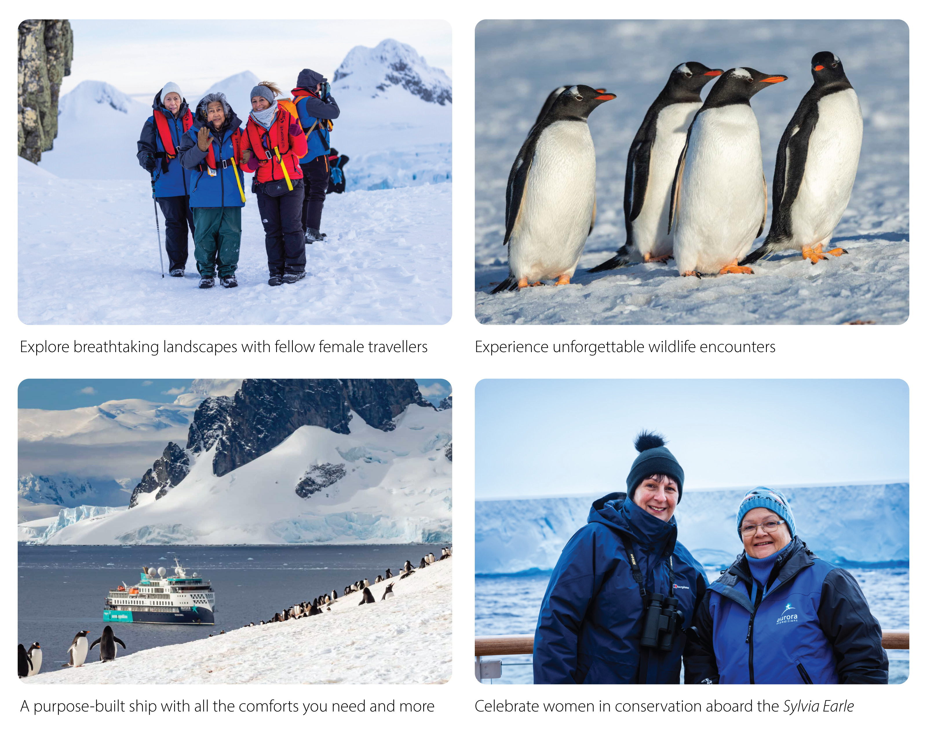 ✓ Travelling to Antarctica will open the door to new experiences, perhaps new challenges, and with the Aurora-style of travel, new friendships too.