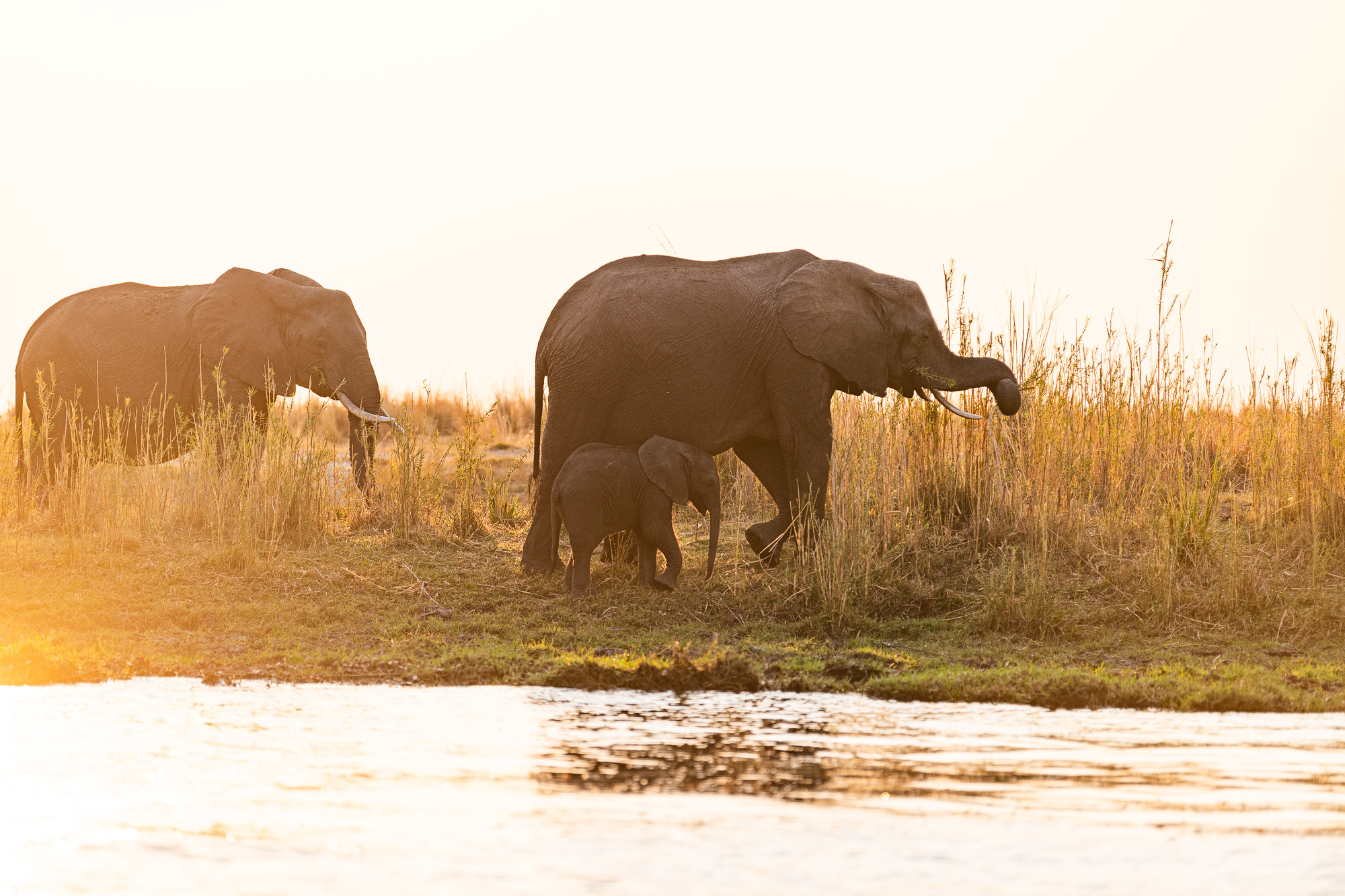 Experience the awakening of Africa at dawn as herds of elephants make their way to the Chobe River for their first drink of the day. Join us on an open-air vehicle safari through lush Chobe National Park, encountering a variety of elusive wildlife.