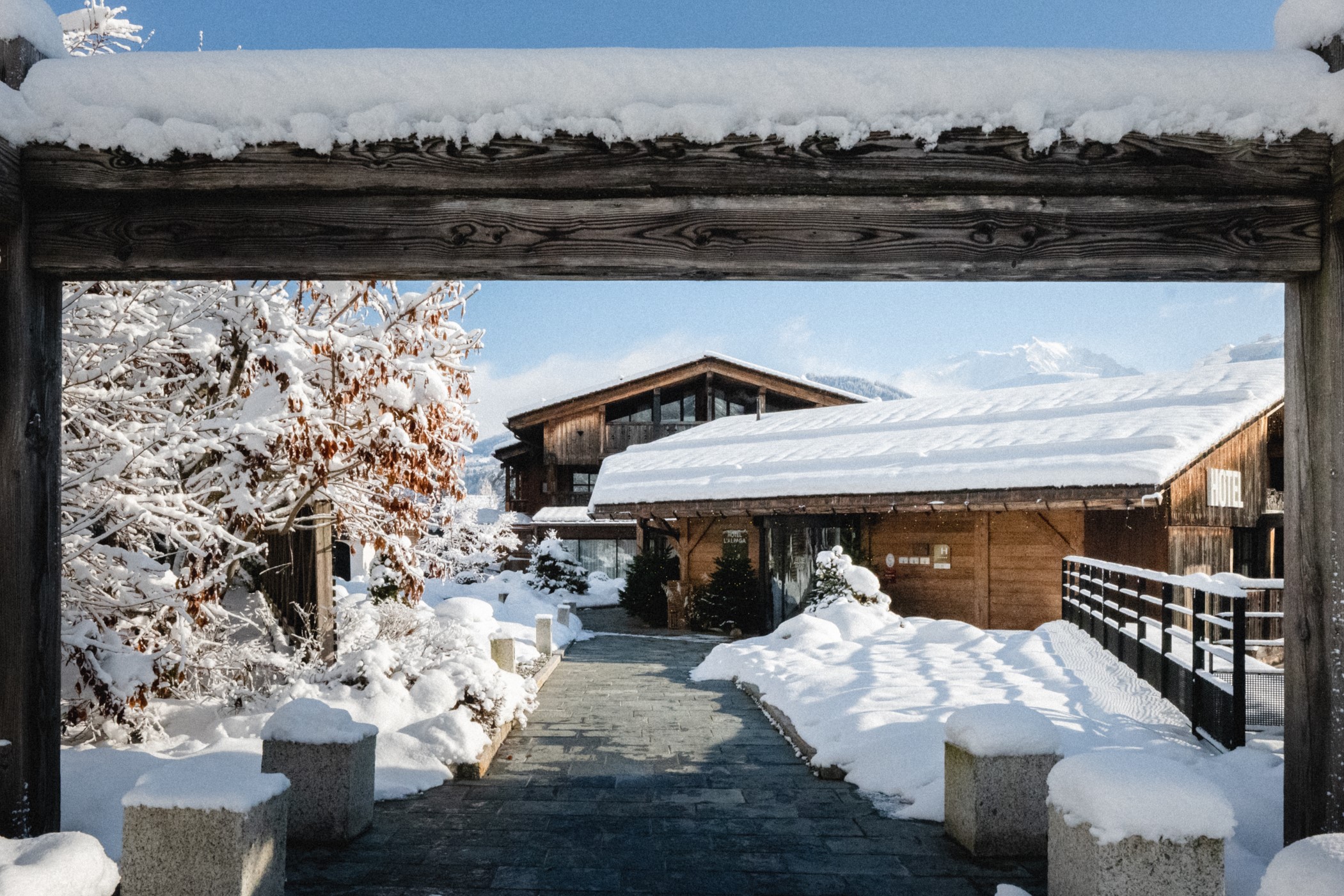 Idyllic location, 1,100m high, l’Alpaga is the only resort in Megeve to offer breathtaking views of the Mont-Blanc. South facing, the hotel and the chalets over-look the Val d’Arly which welcomes the guests into a natural universe of pure beauty.